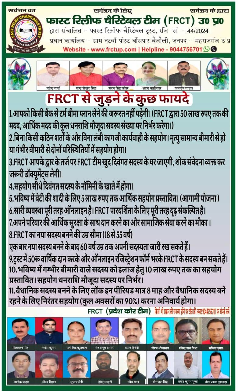 द्वारा संचालित- फास्ट रिलीफ चैरिटेबल ट्रस्ट, रजि0न0 37/2025